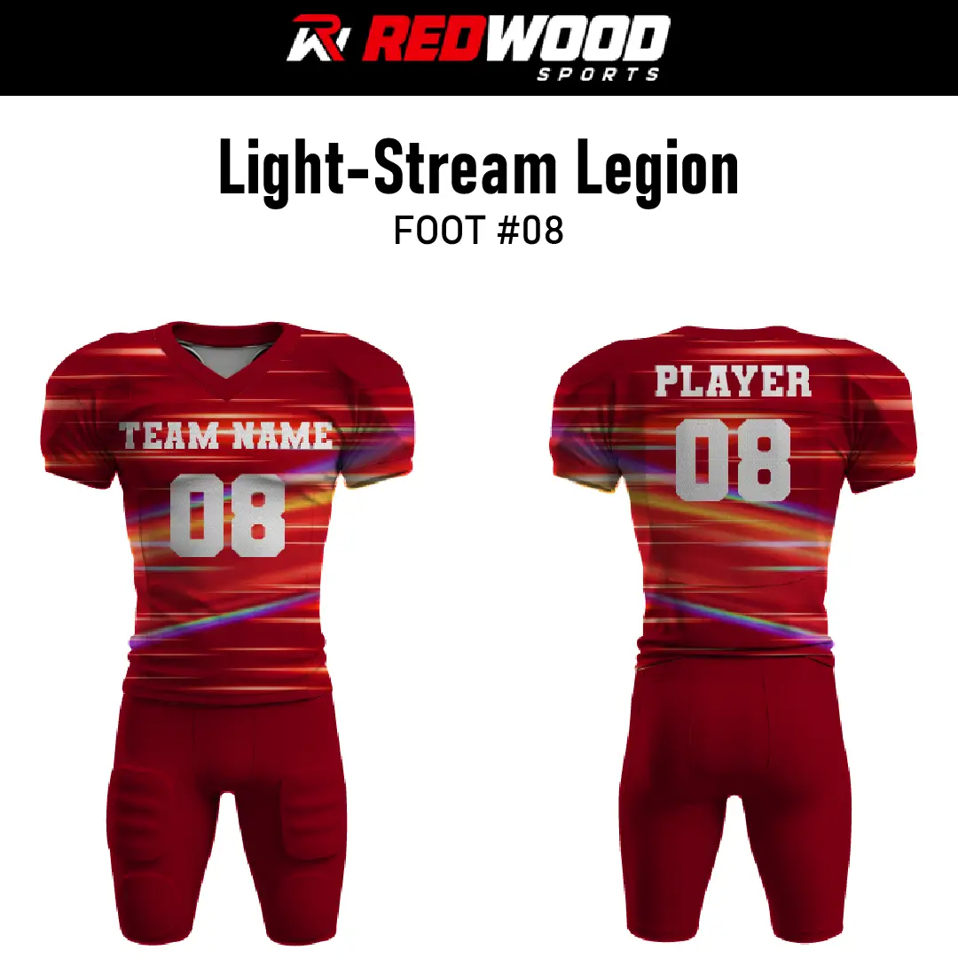 Modern football demands explosive movement. Our uniforms are made from a strategic blend of high-performance polyester with Spandex/Lycra. This combination provides a four-way stretch that moves with the athlete, offering a full range of motion for running, catching, and tackling. The fabric is also incredibly durable and moisture-wicking to keep players cool and dry from the first quarter to the last.