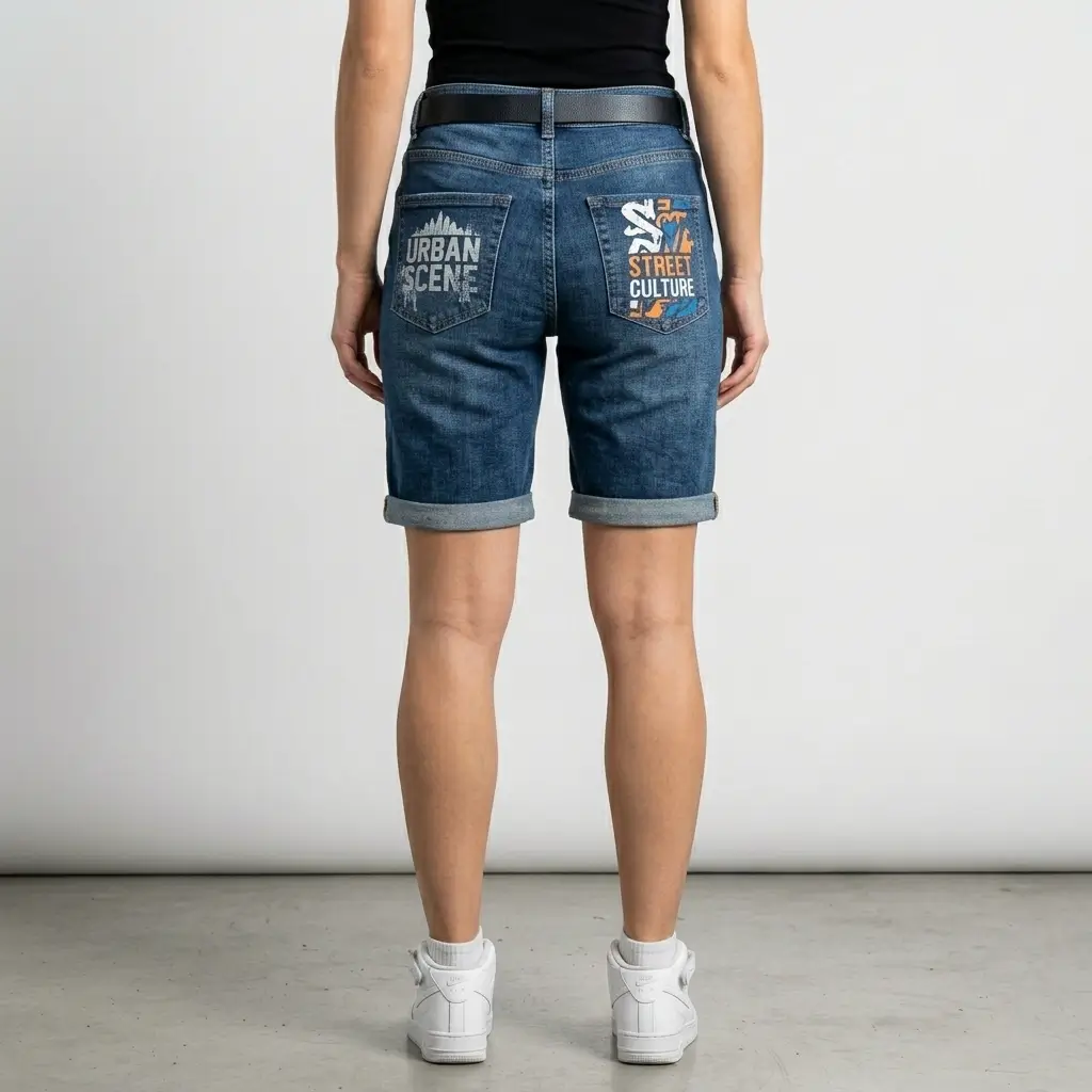 Stay cool and stylish with Bermuda Length Jean Shorts crafted for comfort, versatility, and full customization.