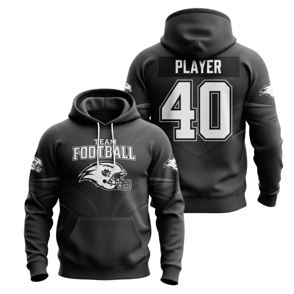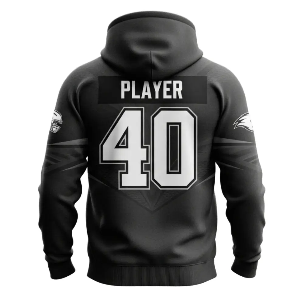 The Sublimated Black Football Team Hoodie is a sleek, performance-ready garment designed for football teams and fans who want to showcase their identity with bold styling and full personalization. Featuring helmet graphics, team logos, and premium sublimation printing, this hoodie delivers comfort, durability, and pride.