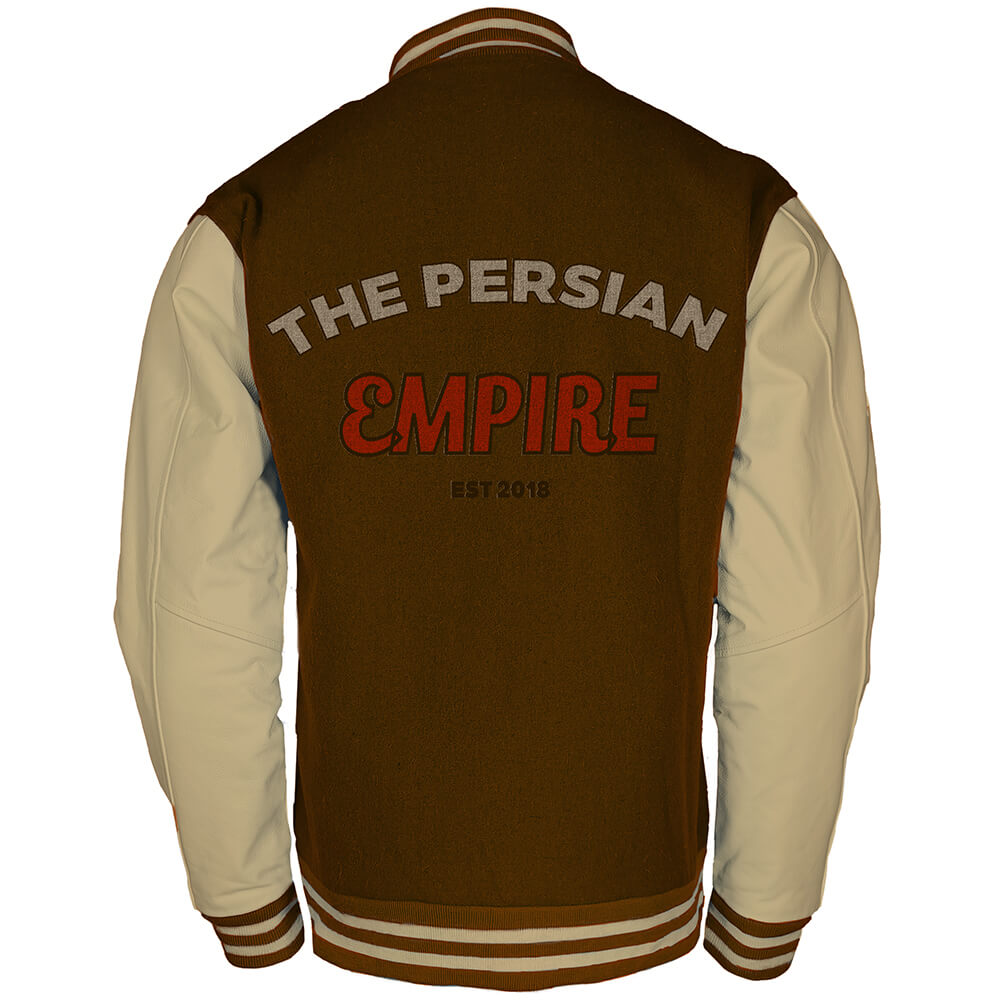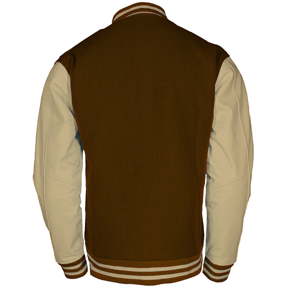 Elevate your group’s style with our varsity jackets in bulk, featuring a stylish light brown wool body and cream leather sleeves. Crafted with quality materials, these jackets are perfect for cooler weather and make an excellent choice for team uniforms or group attire. You may also like our Scarlet Red Letterman Jacket.