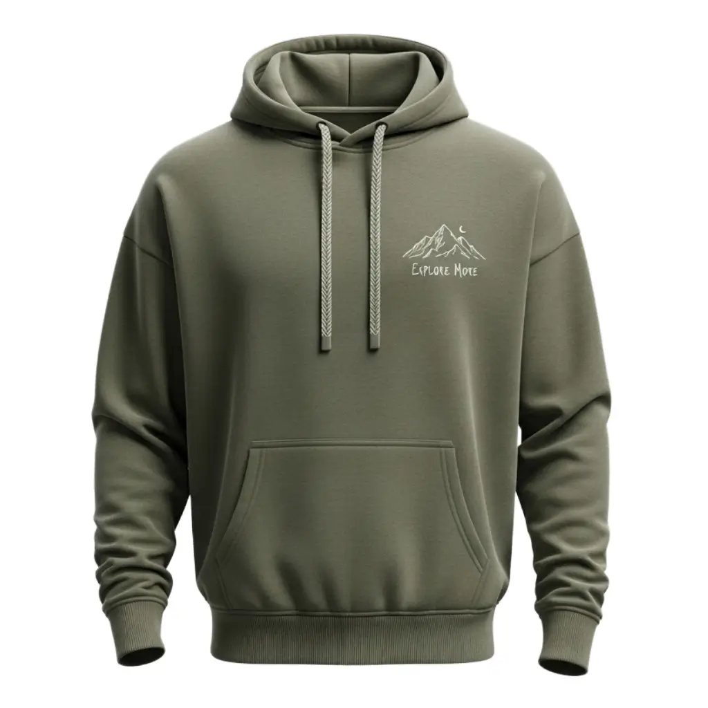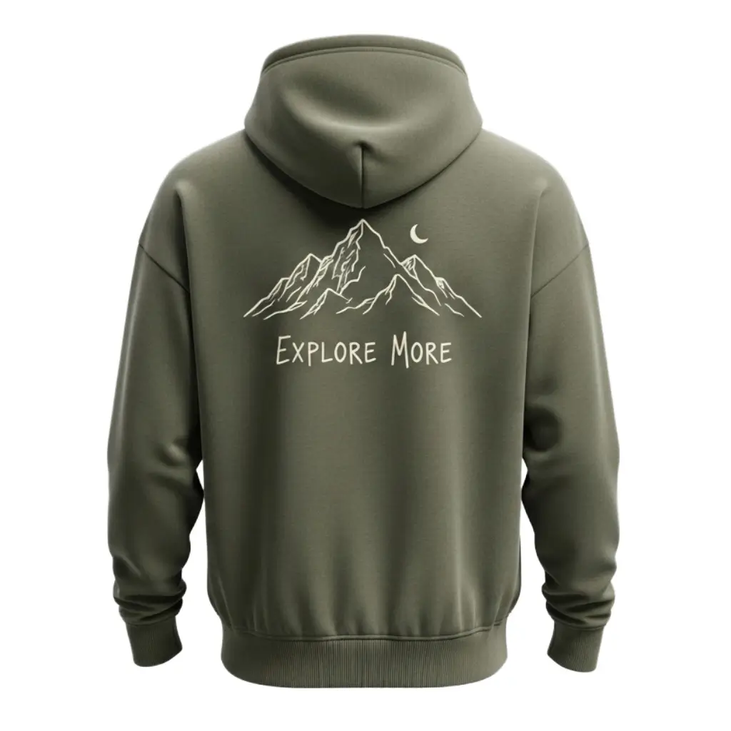 Celebrate the spirit of adventure with this 100% customizable hoodie, featuring clean mountain linework and the uplifting “Explore More” message on both front and back.