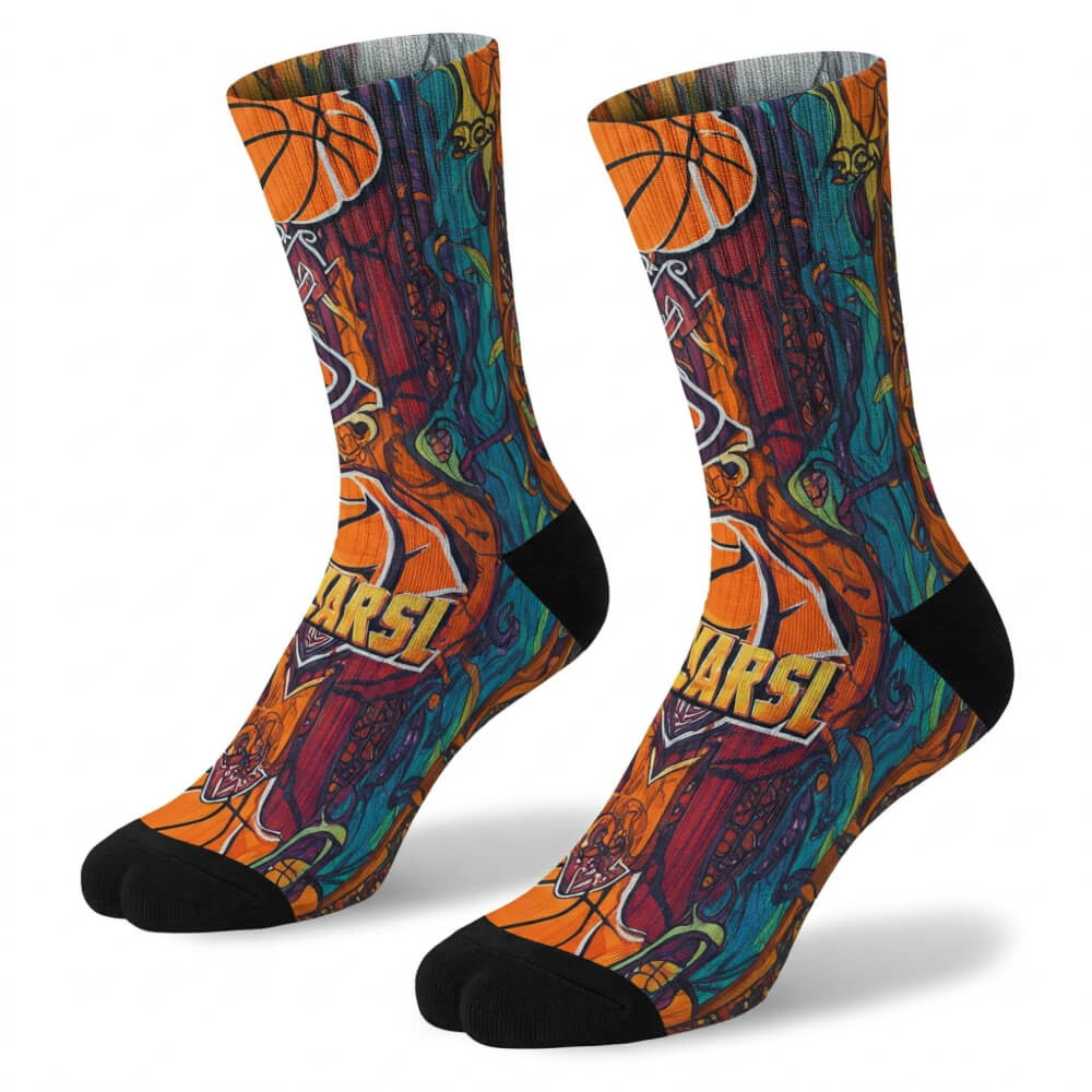 - Vibrant All-Over Prints: Each pair of socks features unique basketball-themed designs, including bold graphics, team logos, and dynamic patterns.