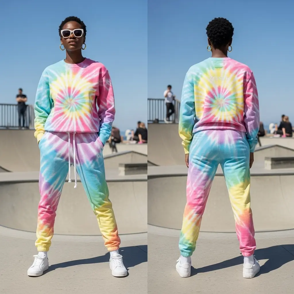 Bring color and energy to your brand with the Rainbow Pastel Spiral Tie Dye Sweatsuit—crafted for expressive teams, creative brands, and standout merch drops.