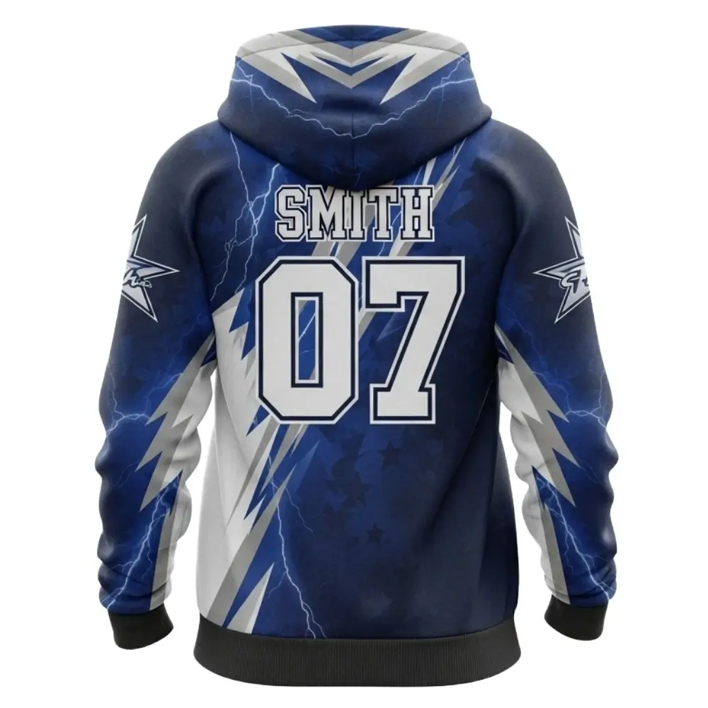 The sublimated Stars softball hoodie is a high-energy, performance-ready garment designed for teams and fans who want to showcase their identity with bold graphics and full personalization. Featuring star motifs, lightning bolts, and premium sublimation printing, this hoodie delivers comfort, durability, and team pride.